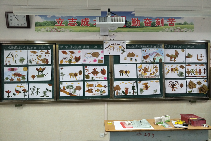 活动分为前期准备和后期制作两个环节。11月25日上午,支教队的志愿者们向学生们介绍了“初冬剪影”活动的目的及意义,详细讲解了剪叶版画的制作方法,并展示了自己提前制作好的作品。随后,志愿者们带领学生们观察、欣赏了校园里各种各样的落叶,激发他们的构思灵感。12月2日上午,剪叶版画活动正式开始,学生们构思奇特新颖,做出来的作品都各具特色,栩栩如生。他们将不同色彩、各种形状的树叶剪成自己想要的模样拼粘在一起,配以小树枝、小花朵等作为点缀,制作成具有独特意义的剪叶画作。惟妙惟肖的蝴蝶、蜻蜓,精巧生动的大象、恐龙,鸟兽鱼虫、花草房屋等事物在他们的巧手中又被赋予了新的定义和表现形式。作品制作完成后,学生们纷纷自己的表达方式诠释了各自作品的丰富内涵。 随后,志愿者们对作品进行了评选。活动共创作了30幅作品,志愿者们根据的“构思巧妙、想象丰富、形象生动、富有内涵”的评比准则,评选出一等奖6名、二等奖6名,颁发了奖品和荣誉证书。活动过后,学生们意犹未尽,依然沉浸在创作的乐趣中,他们纷纷表示,此次活动收获良多,此类寓教于乐的特色活动以后要多多开展。