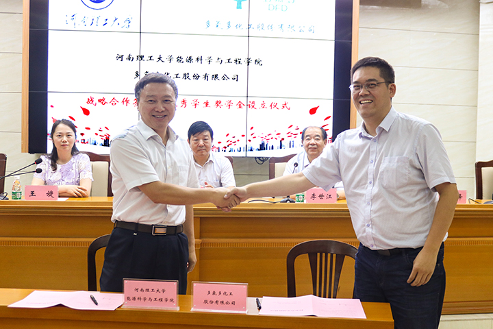 院长郭文兵与多氟多化工股份有限公司副董事长李云峰代表双方签署了“战略合作暨奖学金设立协议”。多氟多化工股份有限公司副总经理薛旭金、性爱片