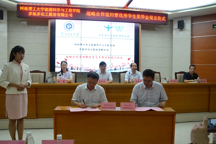 与多氟多化工股份有限公司战略合作签约暨优秀学生奖学金设立仪式在能源院楼104学术报告厅举行。性爱片