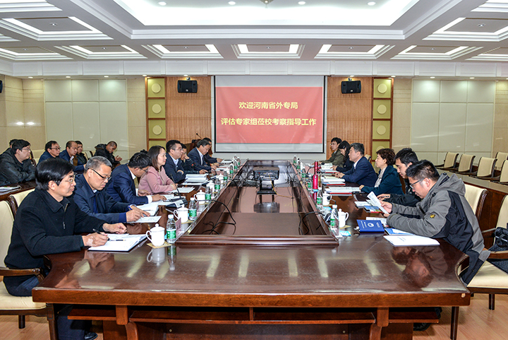 会上,省外专局专家和项目管理处处长周江波传达了河南省外专局关于“河南省杰出科学家工作室”的考察要求,并对考察意义、考察重点和考察程序进行了说明。与会人员共同观看学校简介片后,赵同谦致欢迎辞,他代表学校对外专局专家的莅临指导表示欢迎,并补充介绍了学校历史沿革、人才培养、科学研究及外籍人才引进的基本情况。他表示,此次河南省杰出外籍科学家工作室的验收,必将对学校引进外籍人才的发展起到良好的促进和推动作用,衷心希望各位领导及专家对学校外籍人才的建设发展提出宝贵的意见和建议。