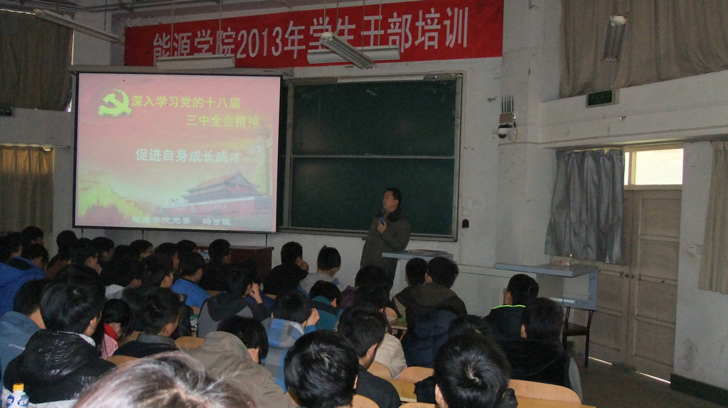 党委副书记杨可臣,学工办主任王明中、团委副书记郭臻臻分别就“党的十八届三中全会精神”、“团组织和团学活动”、“共同成长---学生干部工作与定位”开展了专题讲座。培训班成员分组进行了工作经验交流。杨书记对学生干部提出几点要求,一是要明确责任、以身作则,不断提升政治觉悟和思想品质;二是通过学习不断加强沟通、分析、组织、协调、决策等能力,构建同学与老师之间的交流桥梁;三是要具备良好的心理素质,强化团队观念,勇于担当、相互协作,保持高度自信心,保证班级组织高效运转。