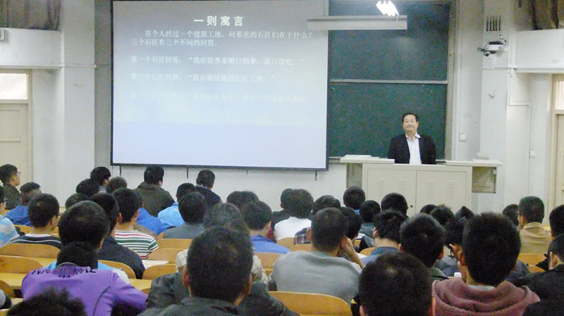 党委书记魏平儒教授亲临现场,为采矿学子讲解大学期间人生目标的重要性,采矿13-8班,采矿13-9班,采矿单招和采矿二学位的同学们聆听了本次讲座。