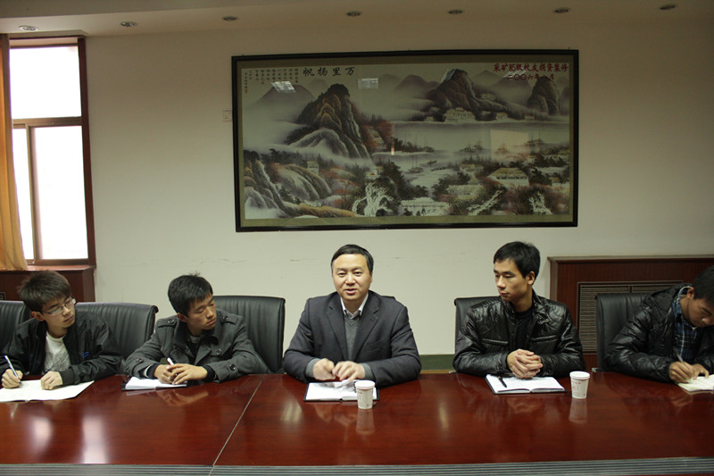 副院长郭文兵在院楼213会议室与12级采矿四班全体同学亲切座谈。12级辅导员蔡骞主持本次座谈会。
