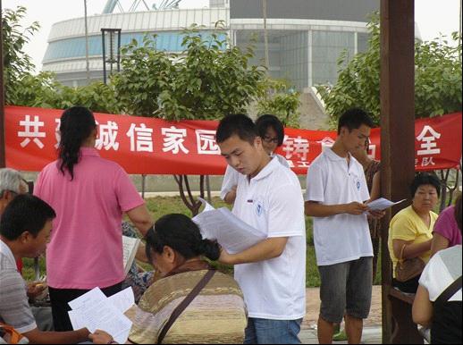 “共建诚信家园 ,共铸食品安全”调研宣传队来到达龙源湖公园进行食品安全宣传活动。