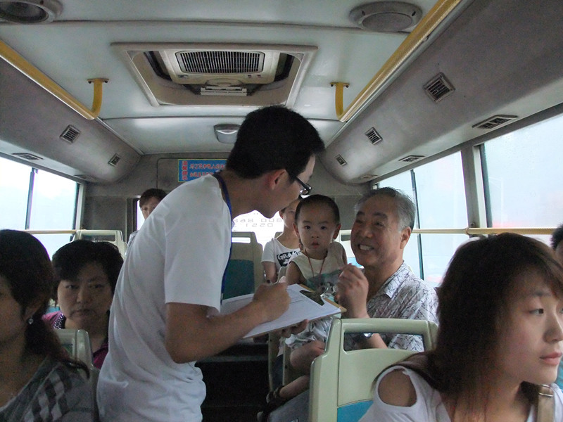 调查团成员温馨提示乘客们不要拥挤,以免发生摔伤、踩踏事故。大家组织人们有序的排队上车,在发放文明公交倡议书与安全乘车小知识的同时,并不忘热心的鼓励乘客为行动不便的老人让座;调查员还倡议市民应避免与乘客间发生口角、摩擦,多考虑别人的感受,积极创建一个文明温馨的乘车环境。此行为受到了乘客和司机师傅的赞扬,一位头发略显花白的大伯笑着对大家说:“这帮学生娃们说的对做的好啊,大家应该献出点自己的力为家乡建设做贡献。”