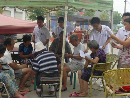 宣传队员首先来到距离学校较近的卢堡村村委会,在和村委领导沟通交流并得到他们同意后,宣传队员在村委会帮助下在其大门口悬挂起了红色条幅,随后又将精心准备的喷绘纸板放置在门口旁边,在准备工作进行中就吸引了不少村民的注意,引起了他们的兴趣,村民们纷纷围上前来询问情况。队员们以发放宣传单的形式向村民们介绍此次活动的主题与意义,同时也向他们分发调查问卷。在拿到宣传单和问卷后村民们都议论纷纷,大部分村民表示,虽然卢堡村位于市郊区,但最近今年在生活上也开始大范围的受到城市的影响,因为自给自足的生活模式被打破,一些生活必需品也开始从城市中购买,像食用油、水果、牛奶、猪肉等食品,但他们大都没有食品安全防范意识,几乎没有在意过假冒伪劣产品。在经过此次宣传活动后,他们不仅很吃惊,也增强了食品安全意识。在停留两个小时后,调查宣传小组向第二个村庄——钦平陵村出发了,这个村落与卢堡村情况基本相同,村民们对关于食品安全方面存在的问题没有太多关注,在听到队员们的解释后,村民们表示今天自己是真上了很重要的一课,在今后的生活中一定会更多地去注意食品的来源与安全,接受食品安全的教育。