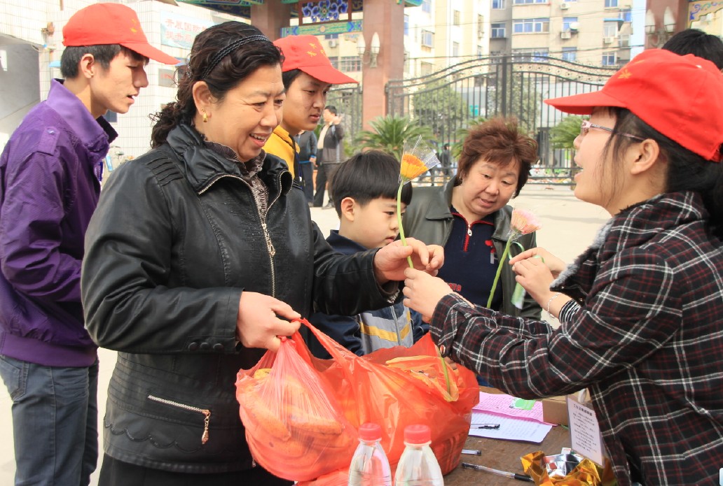“送您一束鲜花,希望您能支持绿色祭奠”,市民们在活动中纷纷拿出所带部分冥币交换同学们手中的菊花。可爱的小朋友拉着父母的衣襟前来兑换菊花,“你们老师不常说要环保吗,今年清明节咱们也绿色祭奠,保护环境。”身旁的父母以活动为机教育着自己的孩子;中青年以及老者也纷纷参与到活动中来,携一枝金菊来看望亲人、祭拜革命先烈;甚至一些已经走过活动场地的市民也折回来换取鲜花,并连连点头微笑:你们这种活动很有意义,我们相信将来肯定会被采取的!一句支持理解的话语让在场的志愿者们更加充满信心。理解的话语、亲切的微笑、菊花的芳香让现场气氛更加文明和谐。最后,在大家的共同努力下,在广大市民的理解支持下,同学们送出了所有的菊花,“烧纸太污染环境,还是用鲜花祭奠好,只要心意到了就行”,一位女士简单的话语让同学们都绽开了似金菊般灿烂的笑脸。