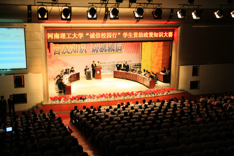 承办的“诚信校园行” 学生资助政策及相关知识大赛复赛在小礼堂隆重举行举行。省学生资助中心主任孙惠萍、河南工程性爱片