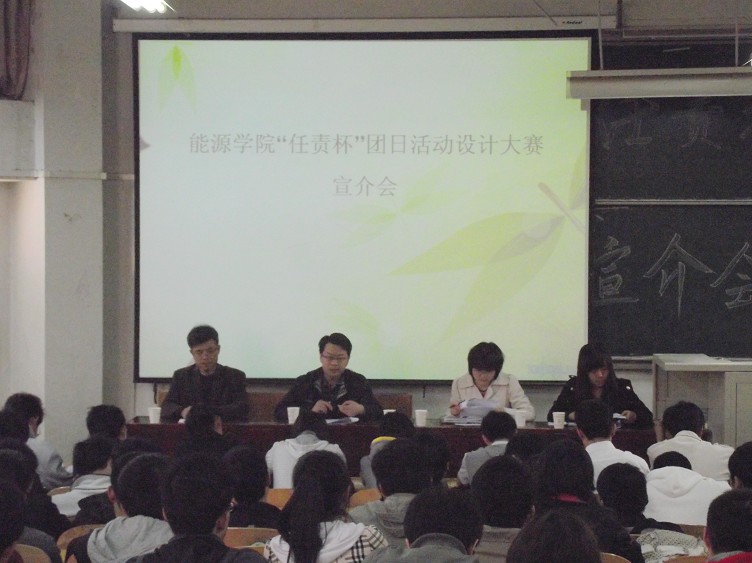 “任责杯”团日活动设计大赛宣介会在能源楼103教室隆重举行。团委书记支光辉,09级辅导员郭瑧瑧,10级辅导员史德新出席本次宣介会,08级、09级、10级各班班长、团支书以及学生代表参加本次大会。