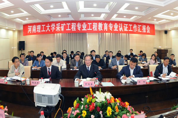 始终坚持服务煤炭工业的办学方向,重视专业建设,尤其是重视具有传统专业优势和鲜明办学特色的工程类专业的建设。特别值得一提的是,我校采矿工程专业在原焦作路矿学堂矿务学门的基础上现已成为学校重点支持建设的工程类专业,具有较高的办学条件和办学基础,为国家、社会培养了大批采矿专业人才。最后,他希望各位专家对我校采矿工程专业在现场认证考察的基础上给予指点,指导采矿工程专业进一步找准发展方向,凝炼专业特色,拓展发展思路,提升建设效果,并以此为契机,带动全校专业建设水平的提升。