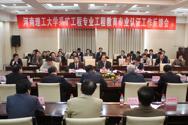副校长周英在听取专家组现场考察意见反馈后表示,专家组敬业、严谨的工作态度为学校师生树立了榜样,对采矿工程学科建设给予了客观、公正、精辟、透彻、极具针对性的评价,对采矿工程教育建设工作所取得的成绩给予了充分肯定。此次认证工作对采矿工程专业今后更快更稳地发展具有积极指导意义。在今后的办学过程中,学校将按照专家组的意见和建议,不断学习国内外办学的先进经验,完善专业培养方案和课程体系建设,加大师资引进与培训力度,加强精品课程和特色专业建设,推动专业建设的又好又快发展。
