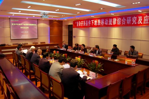 会议在宋振骐院士的主持下进行。项目组成员郭文兵教授就课题研究内容及成果向鉴定会委员作了汇报。他重点汇报了课题组在对地表移动变形参数、深部开采地表移动变形规律、厚松散层开采地表移动变形规律、急倾斜煤层开采地表移动变形规律以及复杂开采条件下地表移动变形规律取得的实地测量研究成果,并就承担项目的创新点进行了详细说明。