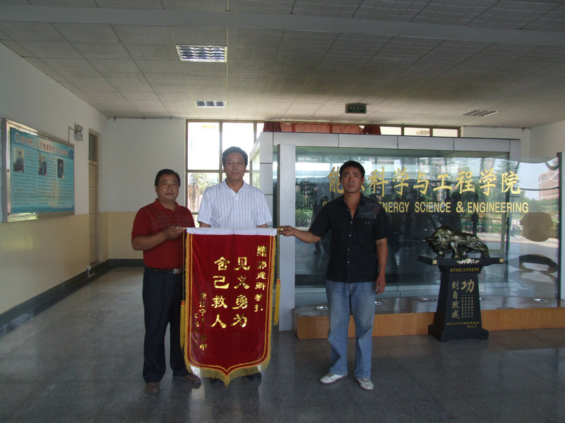 门口响起一阵鞭炮声。接着,一面书写着“见义勇为 舍己救人”的鲜艳锦旗映入大家的眼帘。经锦旗赠送者杜先生之口,事情的缘由终于为大家所知晓。