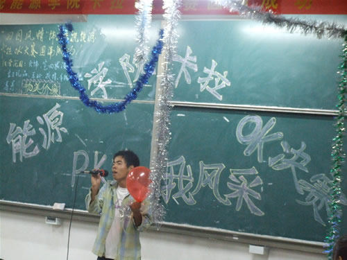 卡拉OK大赛决赛”异常醒目。教室内座无虚席。参加决赛的26名同学的演唱都非常精彩,不时赢来阵阵掌声。其中,06级新生岳清泉以一首优美动听的《你》再加上大方得体的表演获得本次决赛的冠军。