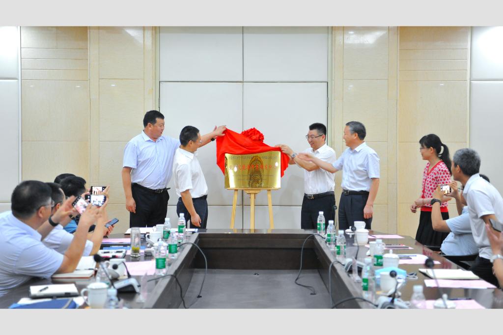 赵同谦、何发岐、郭文兵、黄金岭共同为研发中心揭牌,郭文兵为何发岐颁发兼职教授聘书。
