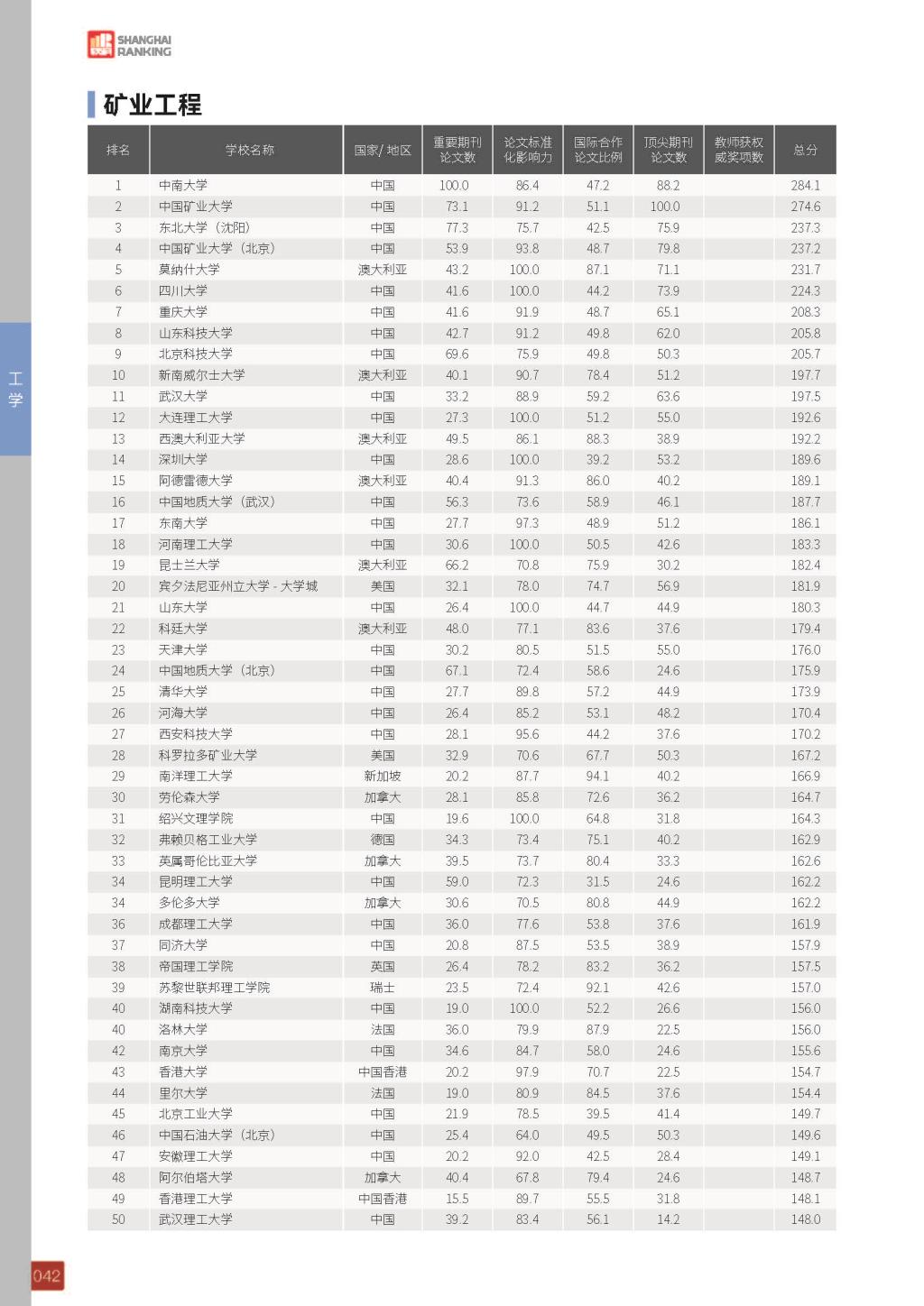 据悉,2023软科世界一流学科排名覆盖55个学科,涉及理学、工学、生命科学、医学和社会科学五大领域,排名对象涉及全球5000余所大学。本次排名中,矿业工程学科全球共有100所高校上榜。