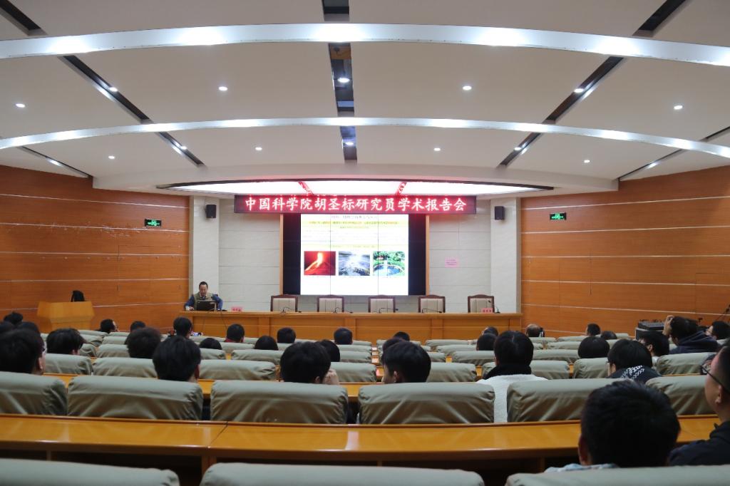 11月14日,受性爱片 邀请,中国科性爱片 地质与地球物理研究所胡圣标研究员莅院座谈交流并作学术报告,相关活动由李东印副院长主持,性爱片 师生120余人参加报告会。