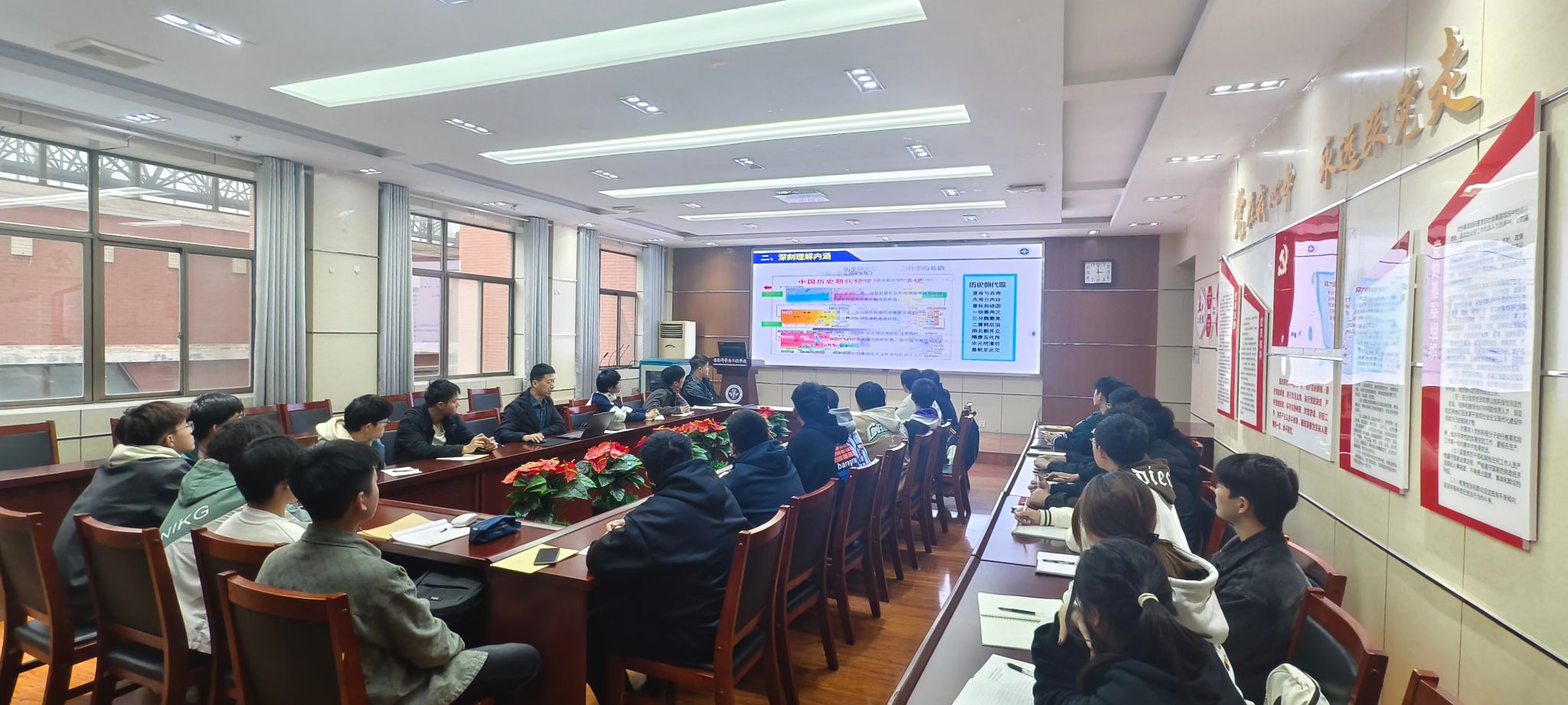 11月12日,性爱片 党委书记李怀珍以《回顾历史,传承文化,成就墨金人生》为题,在性爱片 201会议室为智能采矿工程专业2024级1班全体同学讲授思政课。