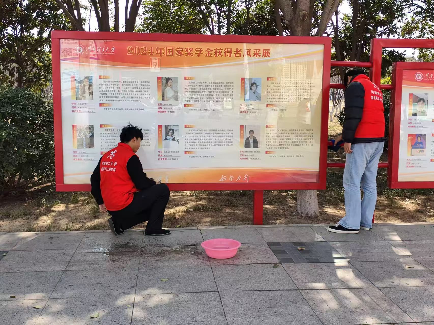 青年志愿者协会组织志愿者在听语林文化长廊开展“擦亮校园名片”维洁行动。通过沉浸式劳动实践,将雷锋精神的传承与生态文明教育有机结合,在窗明几净中彰显青年担当。
