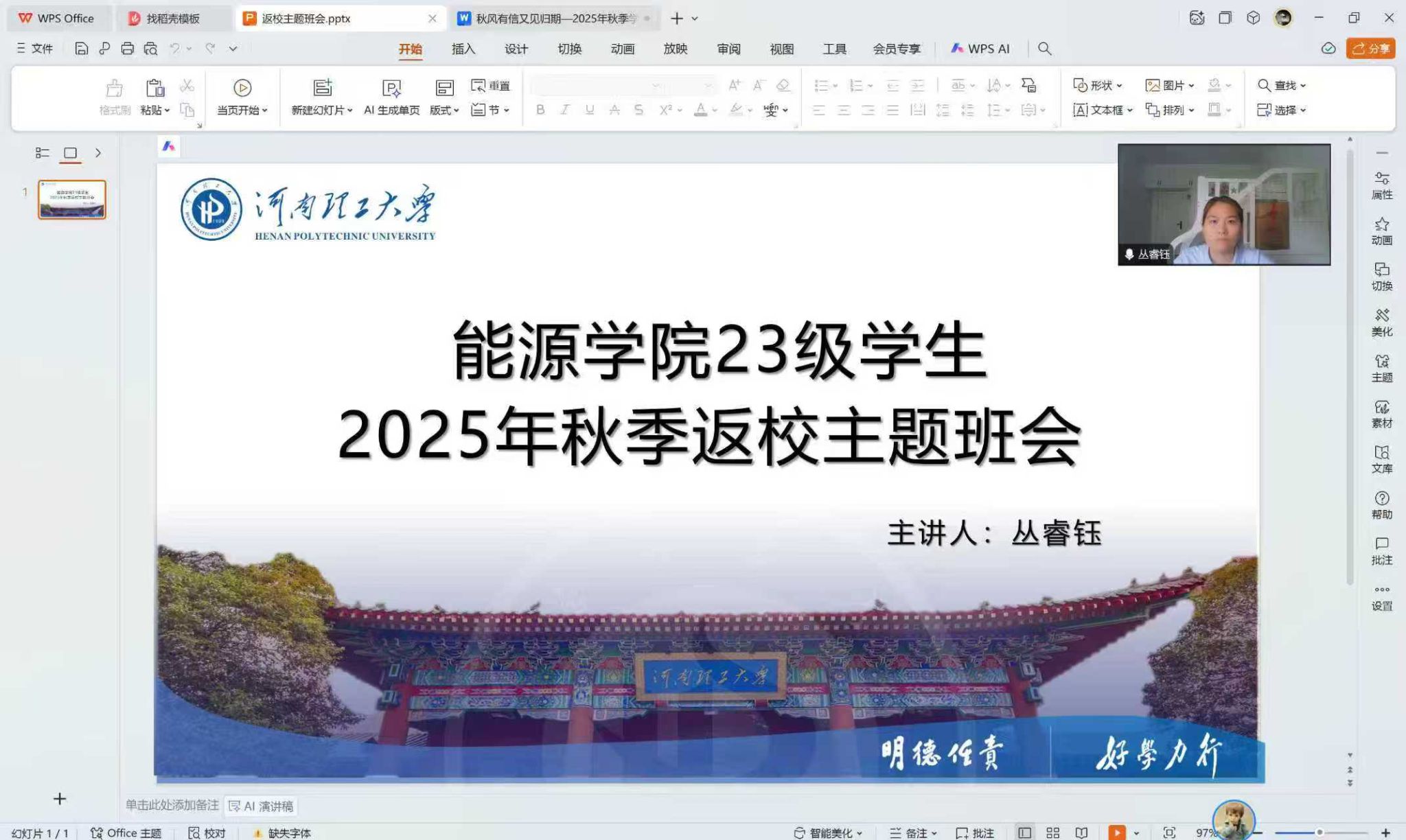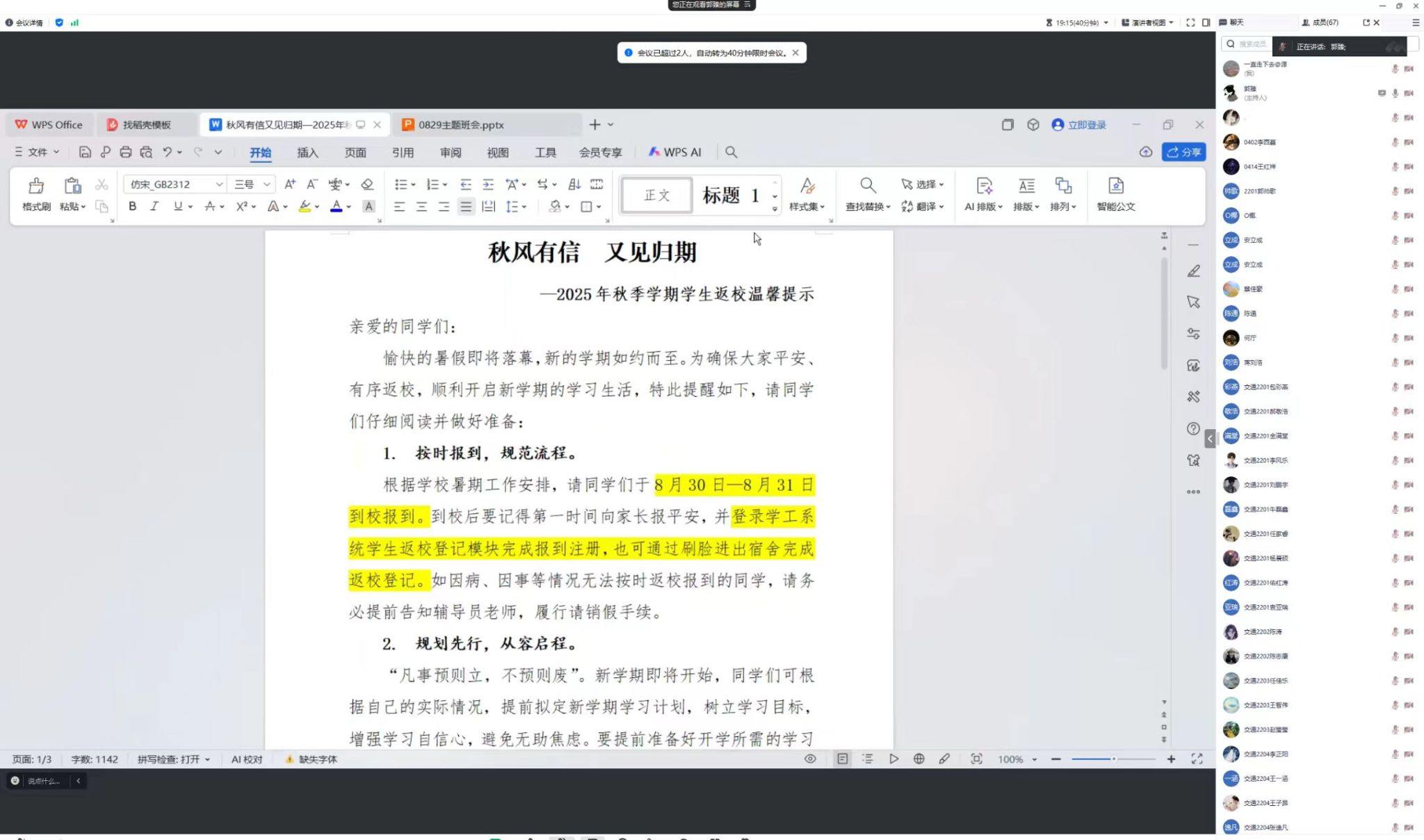 各年级辅导员以专业为单位,组织全体学生召开2025年秋季学期学生返校线上主题班会。