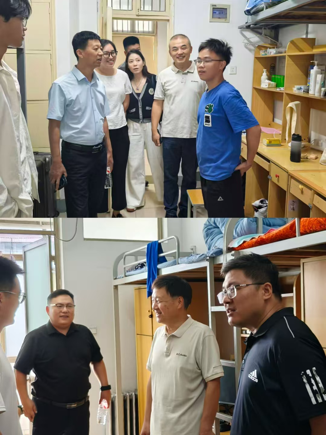 走访中,李怀珍书记与郭文兵院长亲切询问新生籍贯、生活习惯等情况,认真倾听新生对大学生活的憧憬与困惑,分享自身经验,鼓励新生积极面对挑战,合理规划学业生涯。针对新生关心的专业学习、校园活动等问题,领导和老师们一一耐心解答。同时,一行人还特别强调宿舍安全与卫生,叮嘱新生遵守规章制度,营造良好宿舍环境。