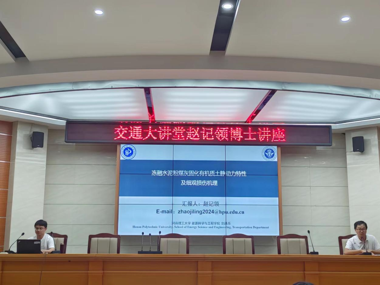 104学术报告厅做了题为《冻融水泥粉煤灰固化有机质土静动力特性及细观损伤机理》的学术讲座,报告由董卓老师主持,交通工程系师生120余人参与本次讲座。