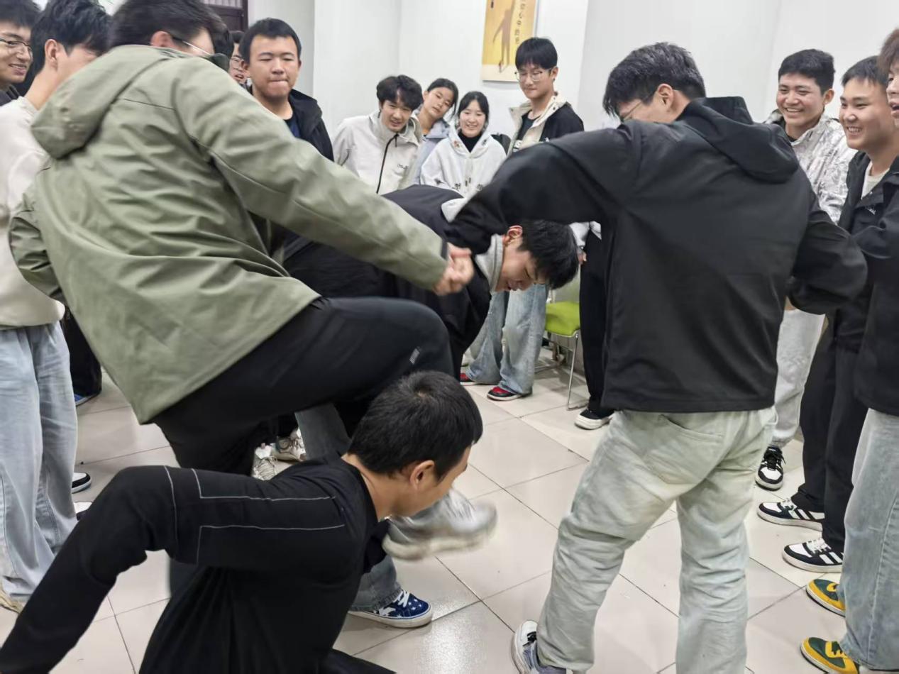 活动围绕团队协作与问题解决能力展开。在心理辅导员封静的引导下,参与者首先手拉手围成圆圈并记忆左右同伴,随后闭目解散、随机站位,并于停止后凭记忆重新拉起左右同伴的手,形成复杂交错的“手链”状态。在“不得松手”的规则约束下,各小组需通过集体商议、策略调整与身体协调,运用钻、跨、绕等方式,逐步恢复为初始有序的圆环形态。活动现场气氛专注热烈,组织有序、互动深入,学生在实践中学习共情倾听,在挑战中凝聚集体智慧。参与同学纷纷表示,活动让我们在真实的协作情境中体会到信任与沟通的力量,对团队合作有了更深的领悟。